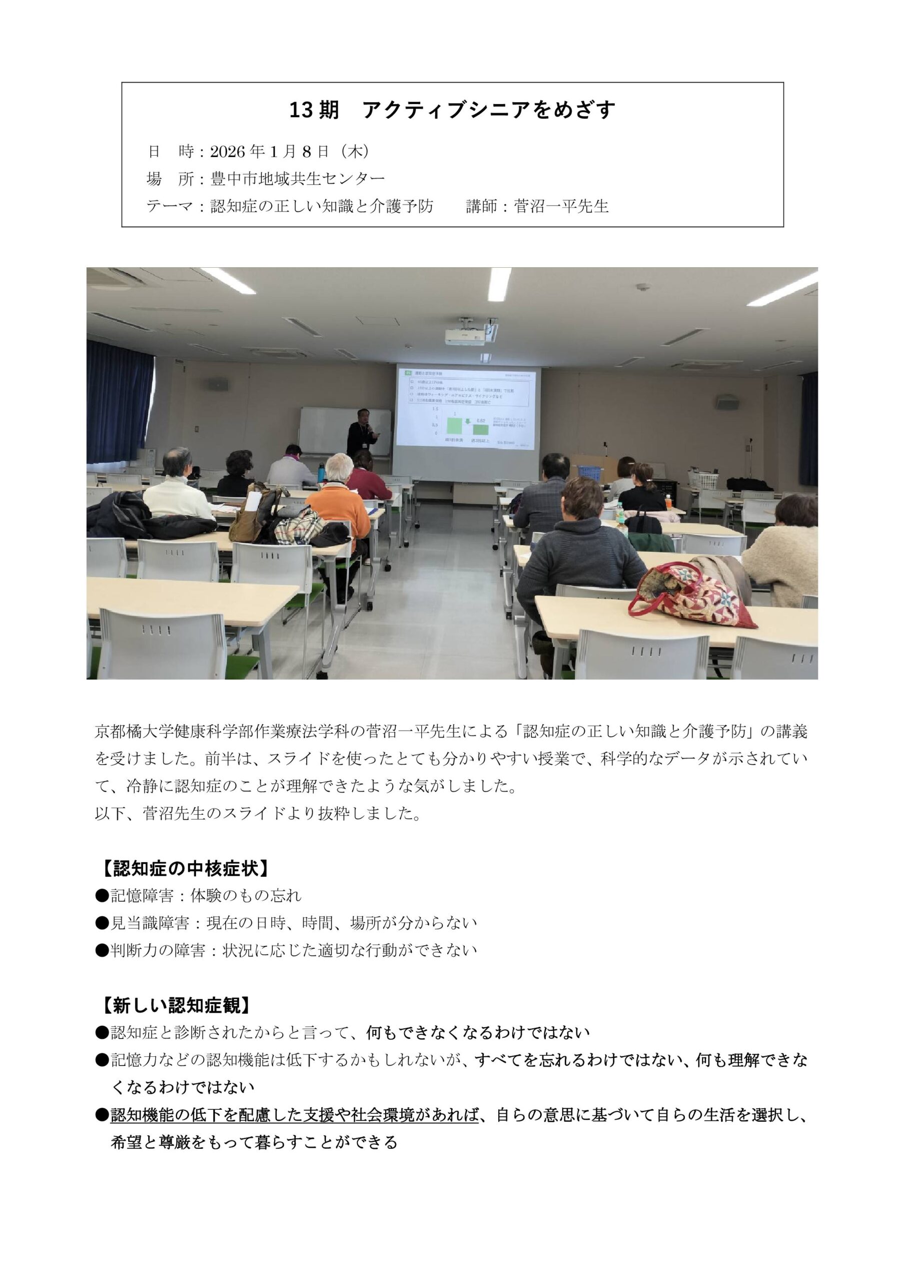 アクティブシニアをめざす トピックス -2025年度(13期生) 年度制講座- 2026/01/11 PDFファイルで見たり印刷したい方はこちら 2025/12/01 PDFファイルで見たり印刷したい方はこちら 2025/09/28 PDFファイルで見たり印刷したい方はこちら 2025/07/04 PDFファイルで見たり印刷したい方はこちら 2025/06/28 PDFファイルで見たり印刷したい方はこちら 2025/06/04 PDFファイルで見たり印刷したい方はこちら