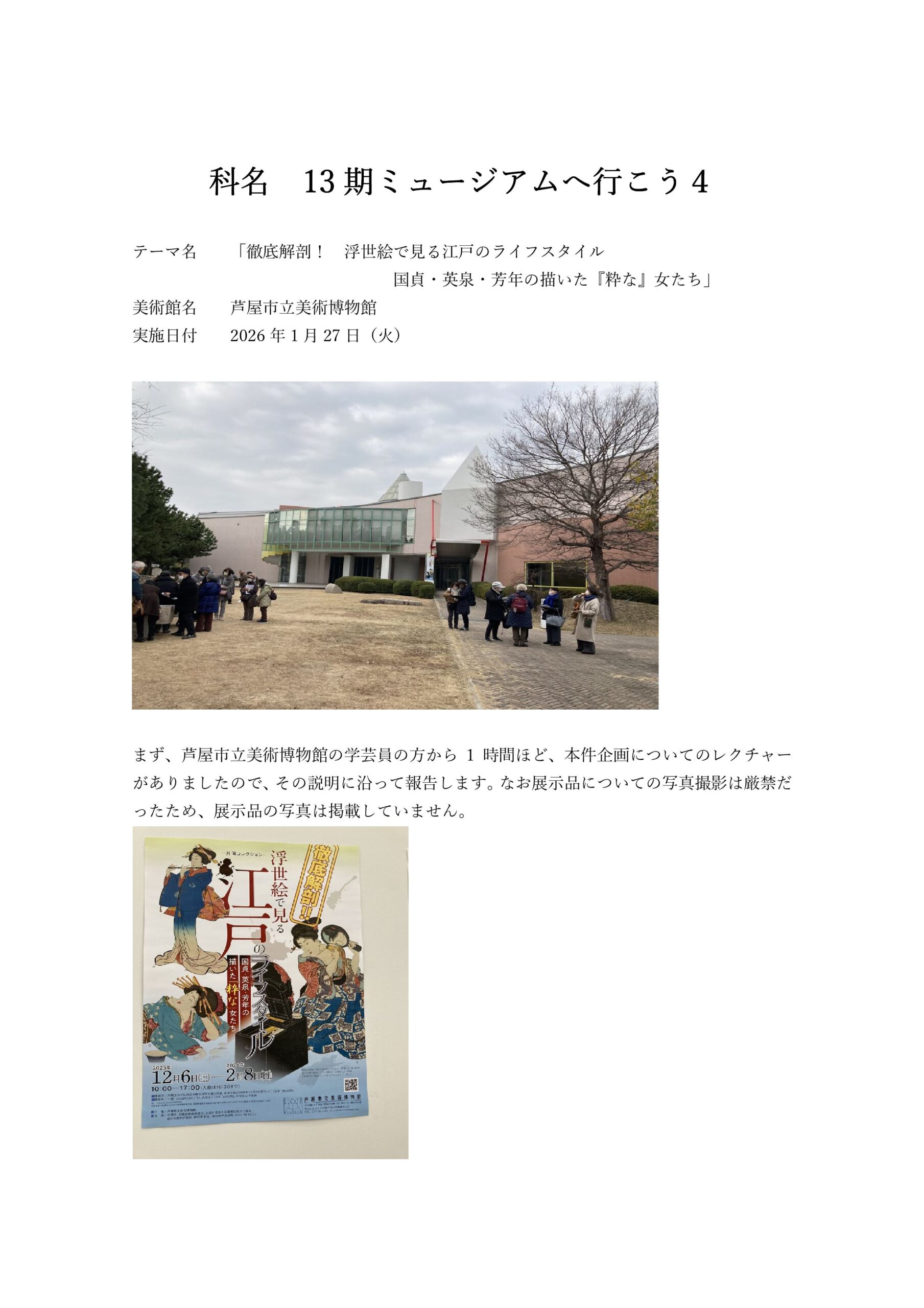 ミュージアムへ行こう4 トピックス -2025年度(13期生) 特別短期講座- 2026/02/04 PDFファイルで見たり印刷したい方はこちら 2025/12/15 PDFファイルで見たり印刷したい方はこちら 2025/11/26 PDFファイルで見たり印刷したい方はこちら 2025/10/26 PDFファイルで見たり印刷したい方はこちら 2025/09/11 PDFファイルで見たり印刷したい方はこちら 2025/07/17 PDFファイルで見たり印刷したい方はこちら 2025/06/04 PDFファイルで見たり印刷したい方はこちら 2025/04/24 PDFファイルで見たり印刷したい方はこちら
