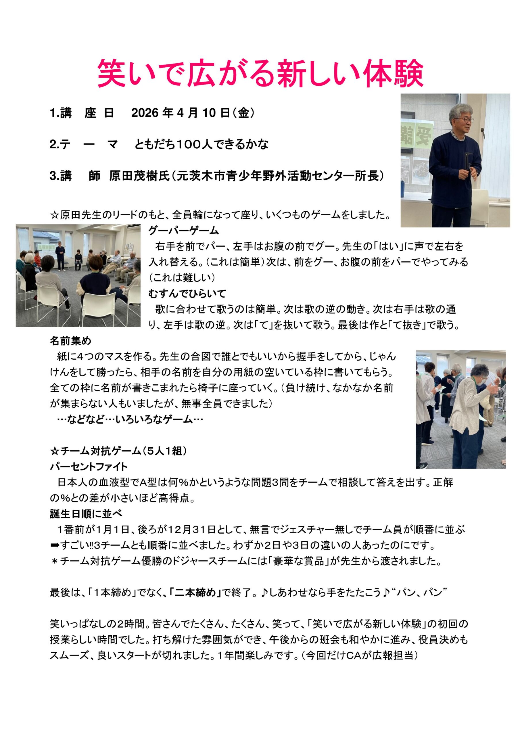 シニアの為の大学校 ~充実の学び そして地域と共に~